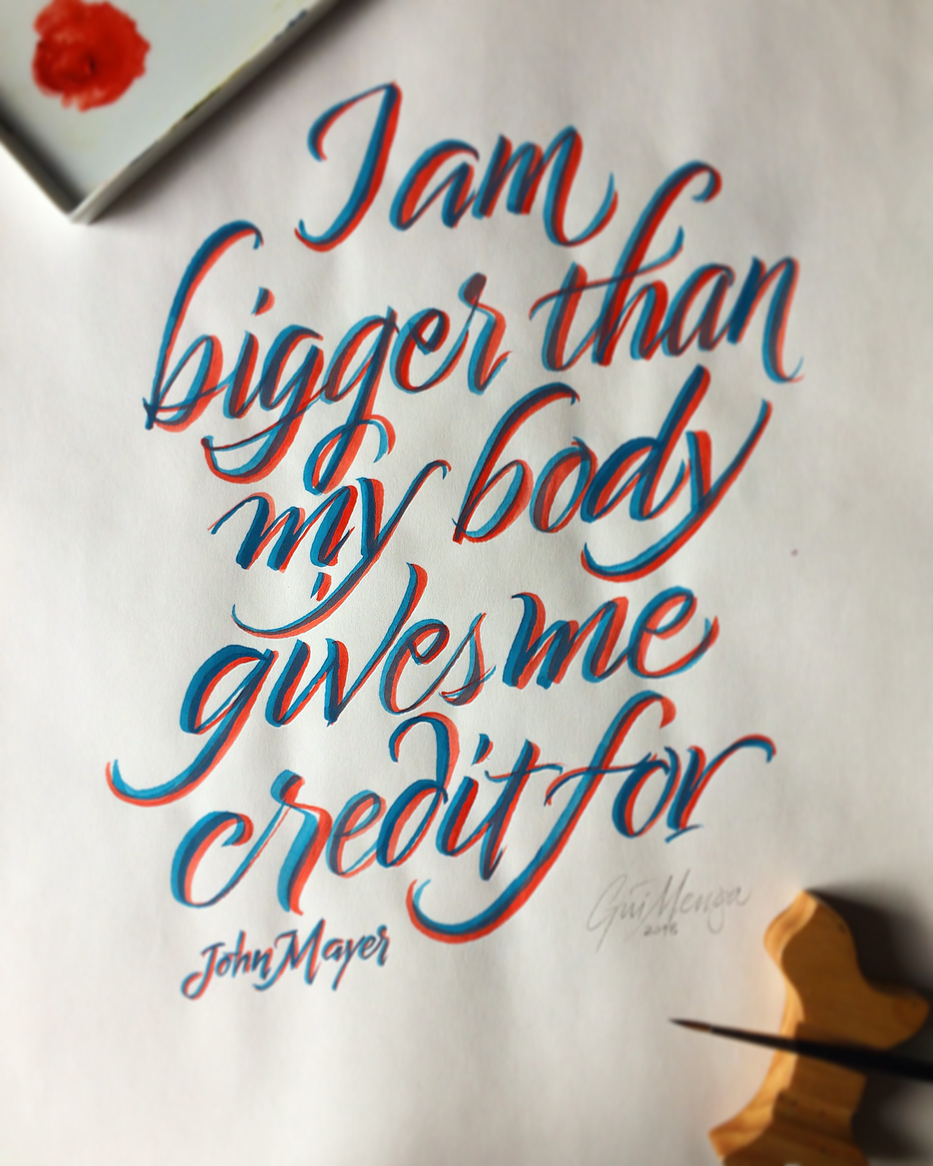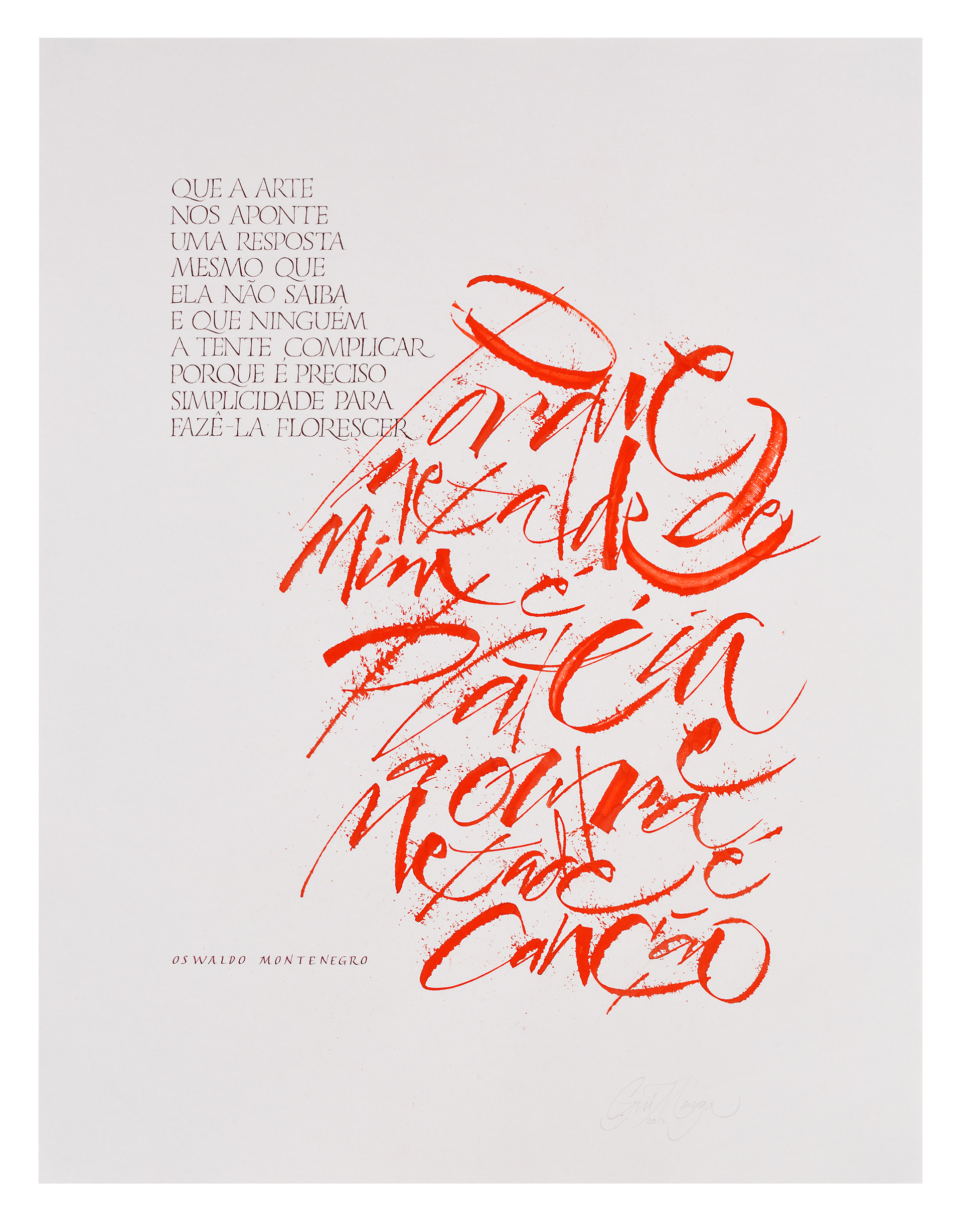 Various calligraphic artworks, both commissioned and personal using different tools like nibs, brushes and ruling pens with ink or guache on paper.